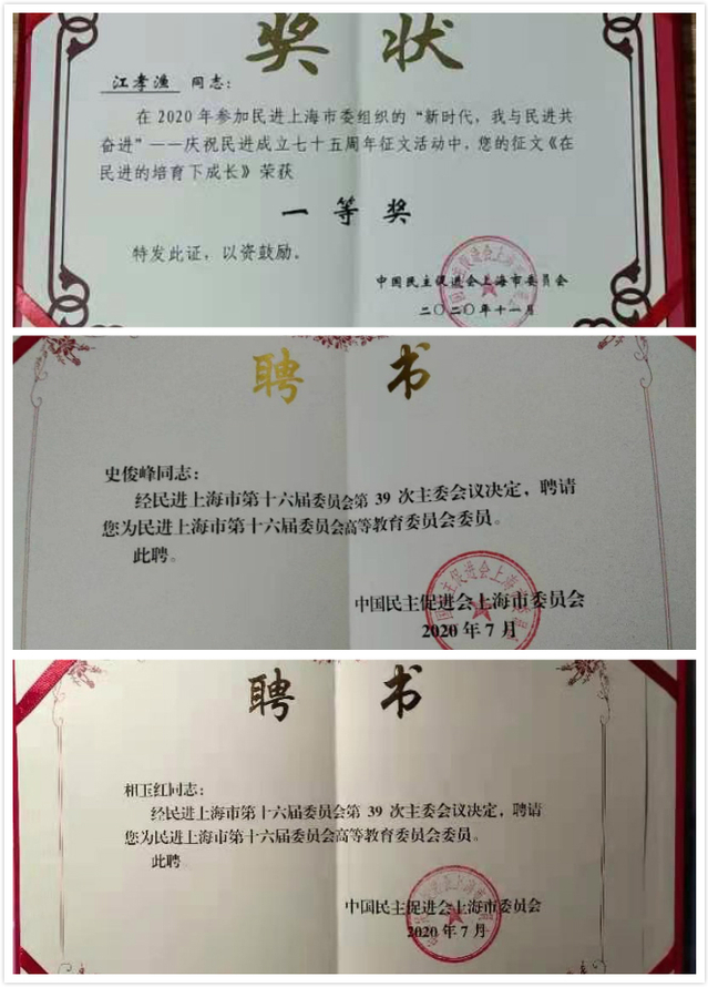 我校民进支部向民进市委递交了6篇社情民意,其中5篇被民进市委录用;积极参与民主监督,4人次参加了中共上海市委委托民进市委组织开展的对长宁区、青浦区“一网通办,一网统管”工作的专项民主监督;3位会员通过激烈的竞争,在民进市委专委会的届中增补中脱颖而出,分别成为高等教育委员会委员和基础教育委员会委员;在民进市委组织的“新时代,我与民进共奋进”——庆祝中国民主促进会成立75周年征文中,1篇征文获得一等奖。